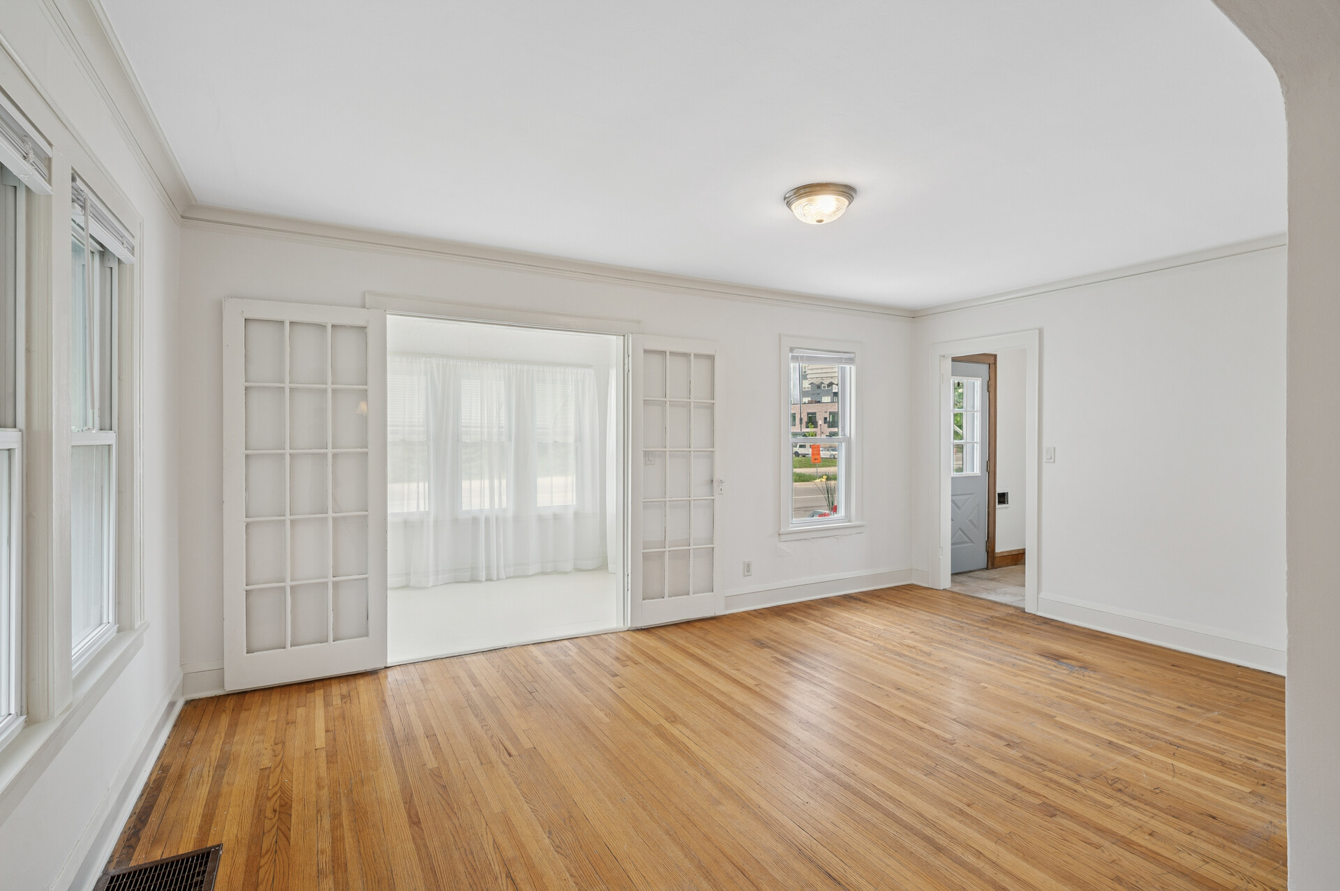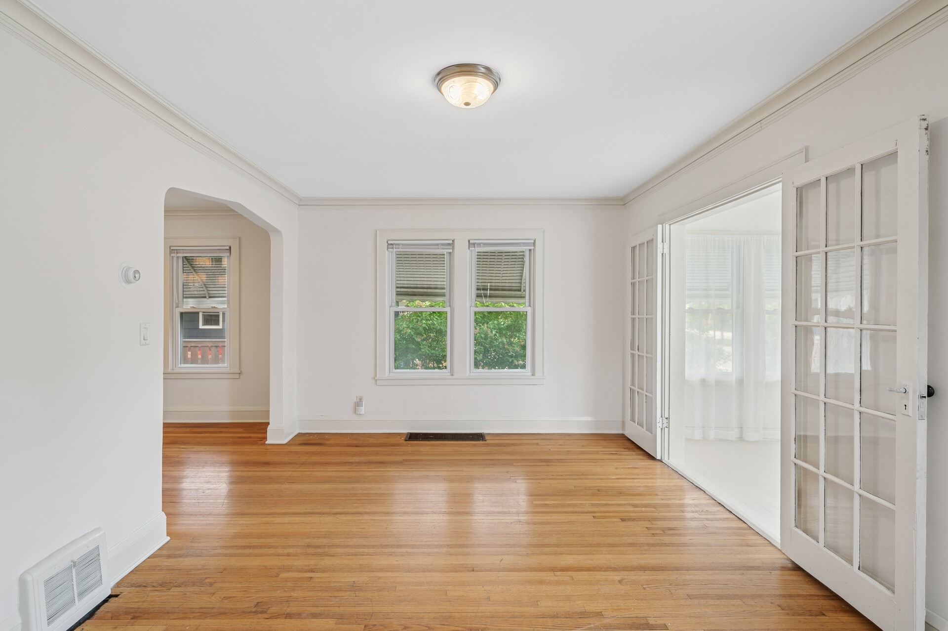 Welcome to this charming 1930s bungalow located in the heart of Hopkins, just off Excelsior Boulevard! Across the street from the Blake School and a short distance to Interlachen & Creekside Parks, this home offers classic style & great space in a desired location. You’ll immediately notice the warmth and character of the original hardwood floors and classic white trim that flow throughout the home. A bright and inviting front sunroom, framed by French doors, floods the space with natural light—perfect as a home office or space to read & relax. The spacious main-level layout includes two bedrooms, a full bath, and generously sized kitchen, dining, and living areas. You’ll love the convenience of a back mudroom/porch space for extra storage or as a casual drop zone. Outside, a wood-fenced yard provides privacy and space for entertaining, while the front porch/deck is a great space for morning coffee. A detached garage and full unfinished basement offer plenty of storage and could be finished for additional living space. This is the perfect blend of timeless character and future opportunity in an unbeatable Hopkins location. Don’t miss it!