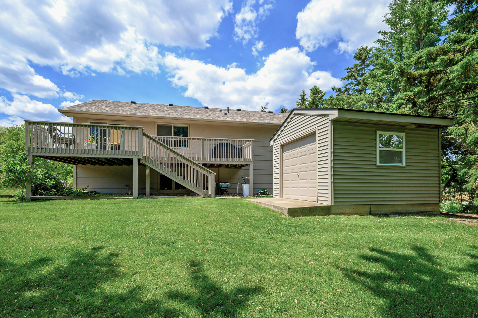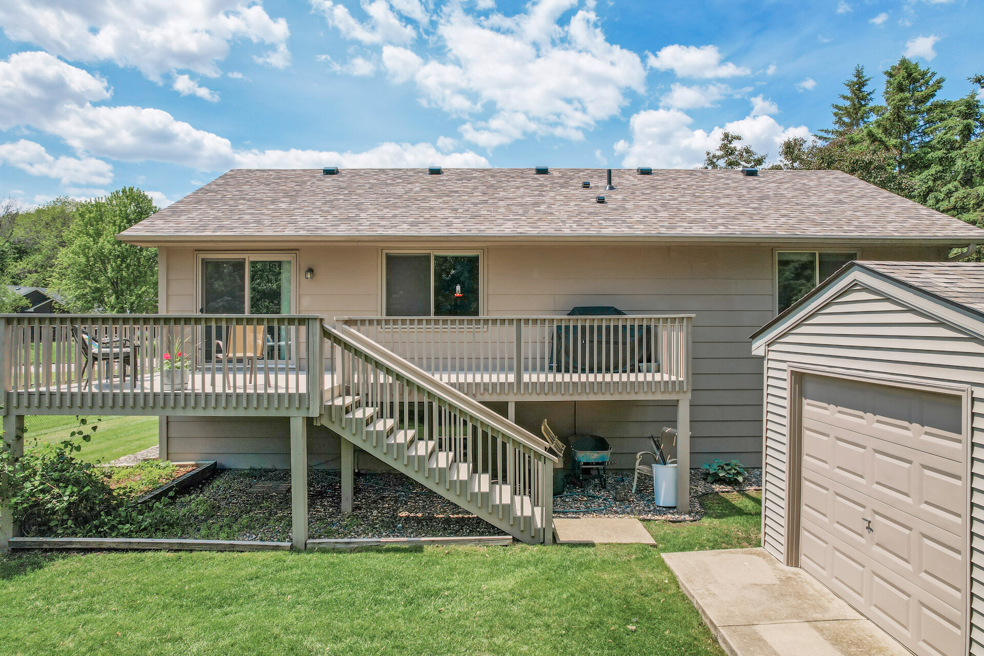 | Impeccably updated and move-in ready, this spacious 4-bedroom, 3-bath home offers the perfect blend of comfort, style, and functionality—all set on a desirable corner lot that backs to a tranquil pond. From the moment you arrive, you’ll appreciate the care and quality poured into every detail, starting with the fresh exterior paint, new roof, and gutter guards, ensuring years of low-maintenance living. Step inside and be greeted by a warm, inviting interior with brand new carpet throughout, updated flooring, and crisp, new interior paint. The vaulted living room is filled with natural light and features a stunning fireplace—one of two in the home—perfect for cozy gatherings. Rich hardwood six-panel doors add timeless elegance, while cordless blinds offer both safety and style. The heart of the home is the beautifully appointed kitchen, complete with a large center island, ample cabinetry, newer appliances, built-in desk area, and informal dining nook with a charming bay window. Step out onto the expansive walk-out deck—ideal for entertaining or simply enjoying the peaceful outdoor setting. The main level offers three generously sized bedrooms on one floor, including a luxurious primary suite featuring his-and-hers closets, a walk-in closet, and an updated en-suite bath with a new vanity, faucet, and toilet. Additional bedrooms provide flexibility for family, guests, or hobbies. On the lower level, discover an oversized family room with a second fireplace and an adjoining flex space—perfect for a playroom, media area, or fitness zone. There’s also a spacious, private office for those working from home, along with ample storage throughout the home to keep everything neatly organized. Additional highlights include an insulated garage, a newer furnace for year-round comfort, and a 12×12 large outdoor shed with a 7-foot overhead door—ideal for storing tools, toys, or seasonal gear. | ||