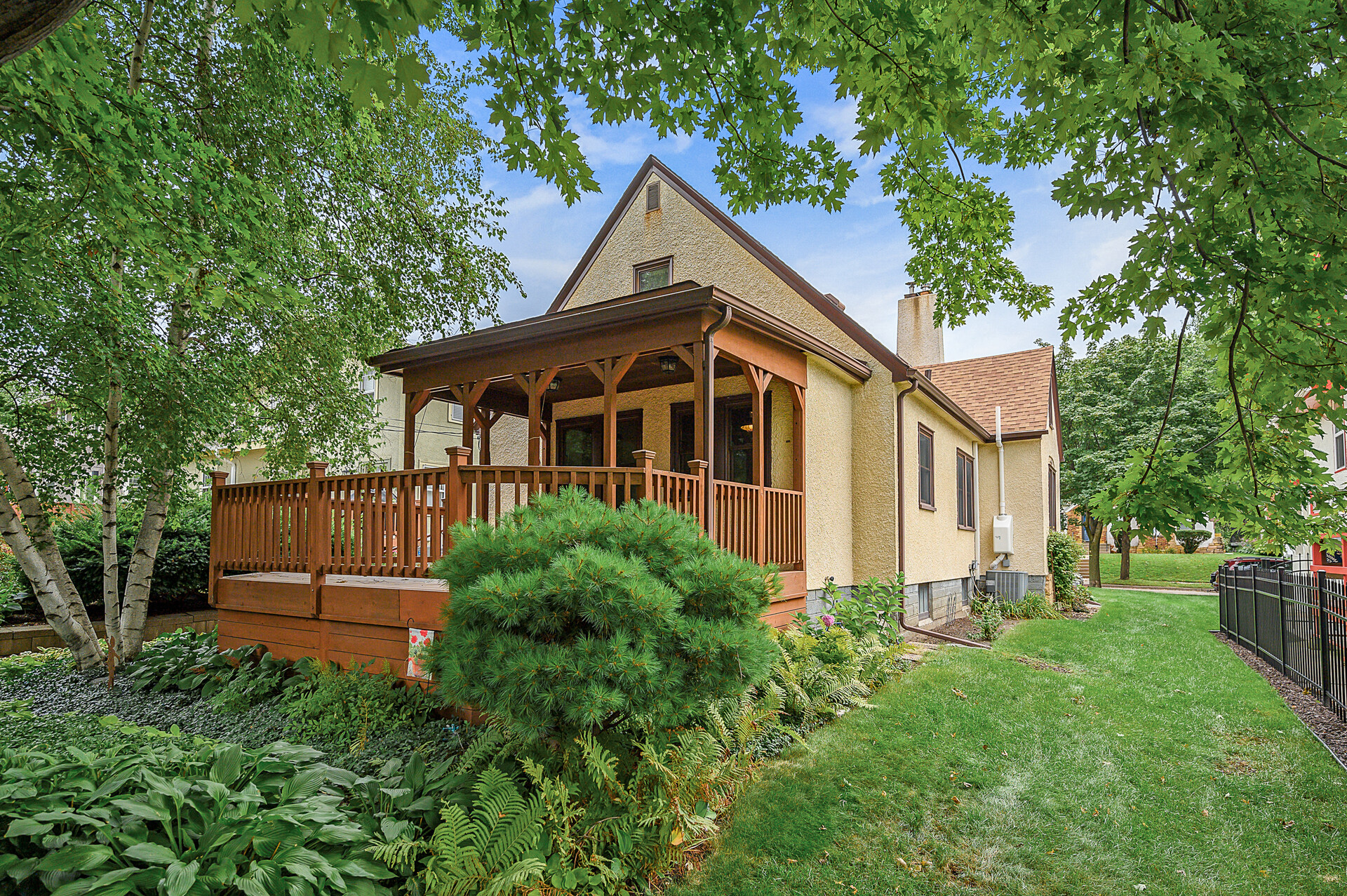 This GORGEOUS, historic Minneapolis Tudor is an absolute must-see! Located in the charming Windom Park neighborhood, it has been lovingly updated and maintained by the same owners for the last 40 years. You’ll fall in love with the pristine original woodwork, newly refinished 1-1/4” hardwood floors, fresh interior paint throughout, and a back yard filled with perennials. The main level includes a cozy living room with a wood-burning fireplace, formal dining room, two bedrooms, and a full bath with original floor tile. The charming kitchen features newer stainless steel appliances and has the perfect nook for casual dining. Upstairs includes brand new carpet and has a third bedroom, sunny reading/office area, and more storage than you’d expect in a home of this style. The fully finished lower level includes new LVP flooring, a wet bar, and a spacious family room perfect for entertaining. You’ll also find an office, beautifully remodeled bathroom with tile shower, and a generous laundry room that flows into an additional space that would be perfect as an exercise, hobby, or storage room. Additional highlights include Central AC, Renewal by Andersen windows, a covered deck with lights and roller shades, and a two-car garage with a concrete driveway. If you’re looking for NE Mpls living in a home with classic features and modern updates, then this is the one for you!