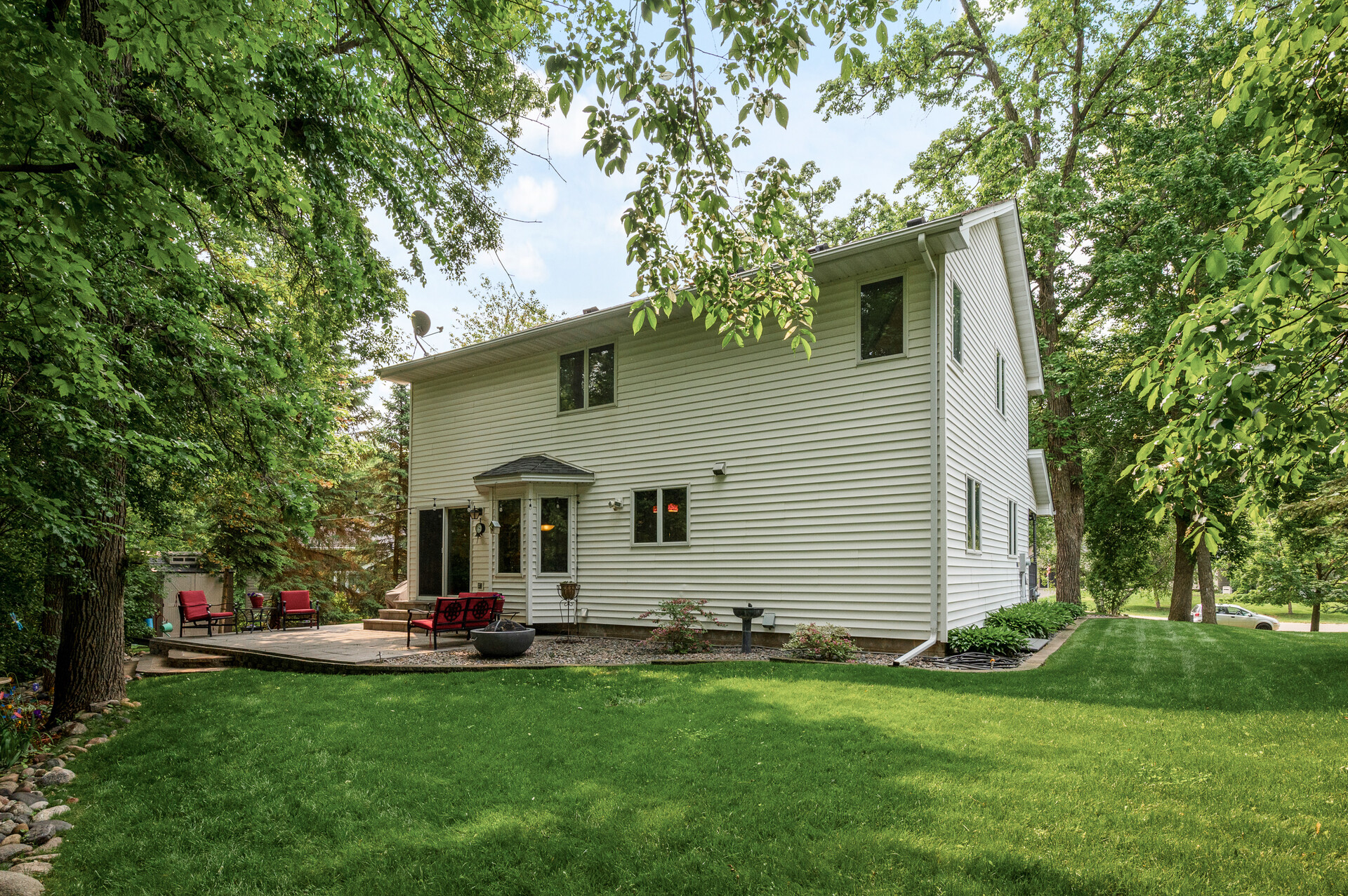 Welcome to this immaculately maintained and thoughtfully updated home, located on a quiet cul-de-sac near Highlands Park and Sedge Meadow Park. Boasting classic 2-story architecture with incredible curb appeal, this home has only had two owners and has remained in the same family – testament to the care and pride taken in maintaining it. A charming front porch welcomes you, while the private backyard is surrounded by mature trees and includes a back patio and pergola—ideal for relaxing or entertaining. Step inside to find gorgeous hardwood floors throughout the main level, stairs, and upper hallway. The kitchen has been updated and features quartz countertops, stainless steel appliances, a center island, and a tile backsplash. The main living room features an adjacent flex room perfect for a den, office, reading nook, or playroom. The upper level offers 3 spacious bedrooms, including a primary suite with a spa-like bathroom & classic finishes. You’ll appreciate the large double-bowl vanity, tiled shower, and walk-in closet, but the showstopper is the clawfoot soaking tub. The secondary bedrooms are generously sized, one with its own walk-in closet and walk-through access to the bathroom. The finished lower level offers generous living space with a family room, game area, utility room, and ample storage. An existing egress window creates the perfect opportunity to add a 4th bedroom—enhancing both functionality and future value. The insulated and heated oversized 2-car garage is perfect for Minnesota winters. Truly one of the cleanest and well-cared-for homes you’ll find—don’t miss this rare opportunity!
