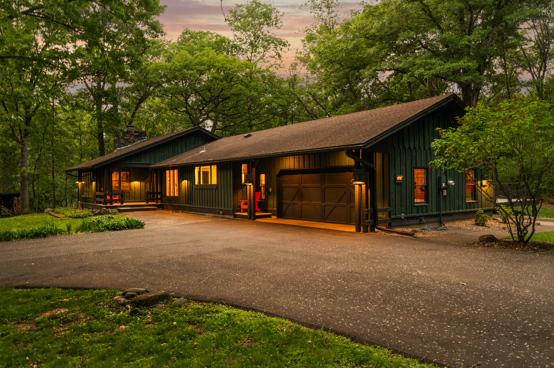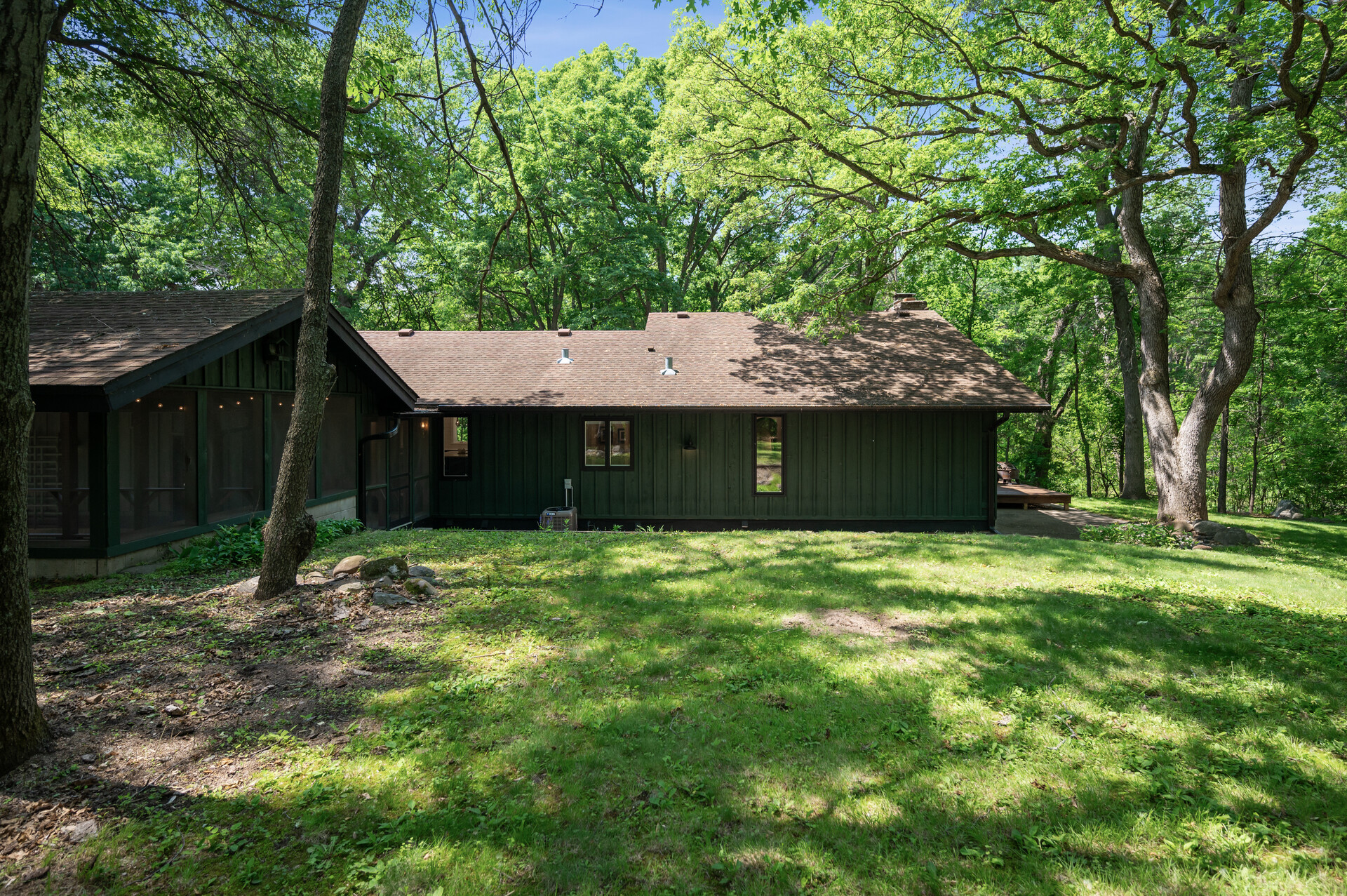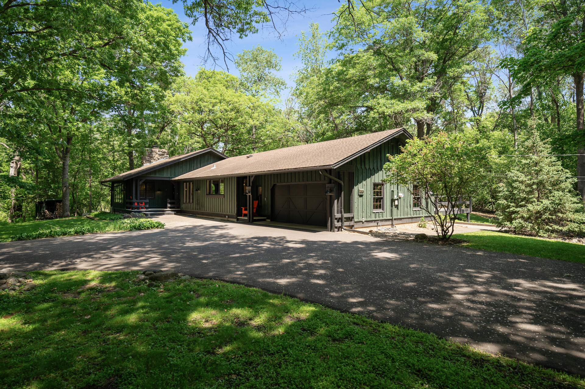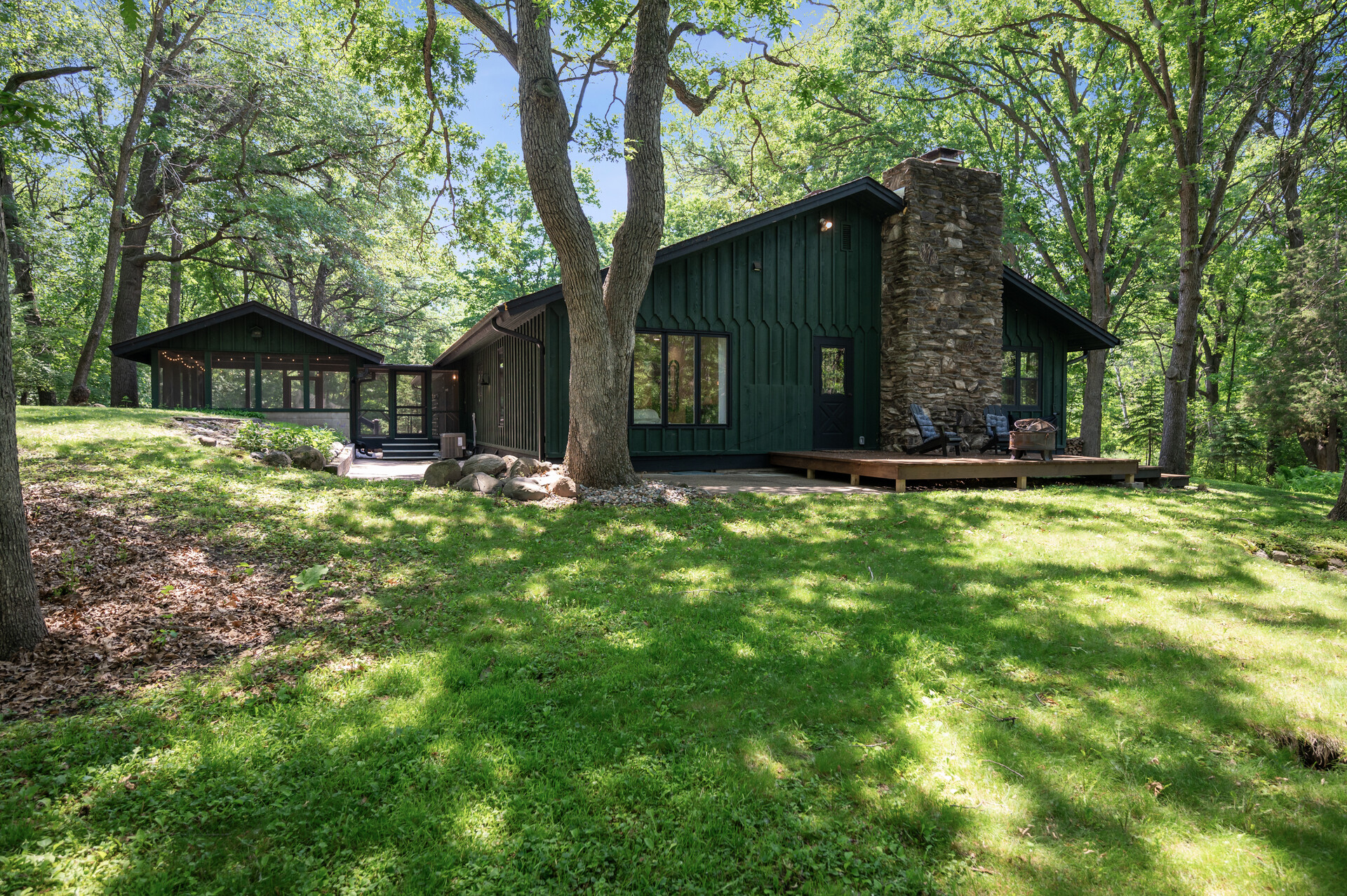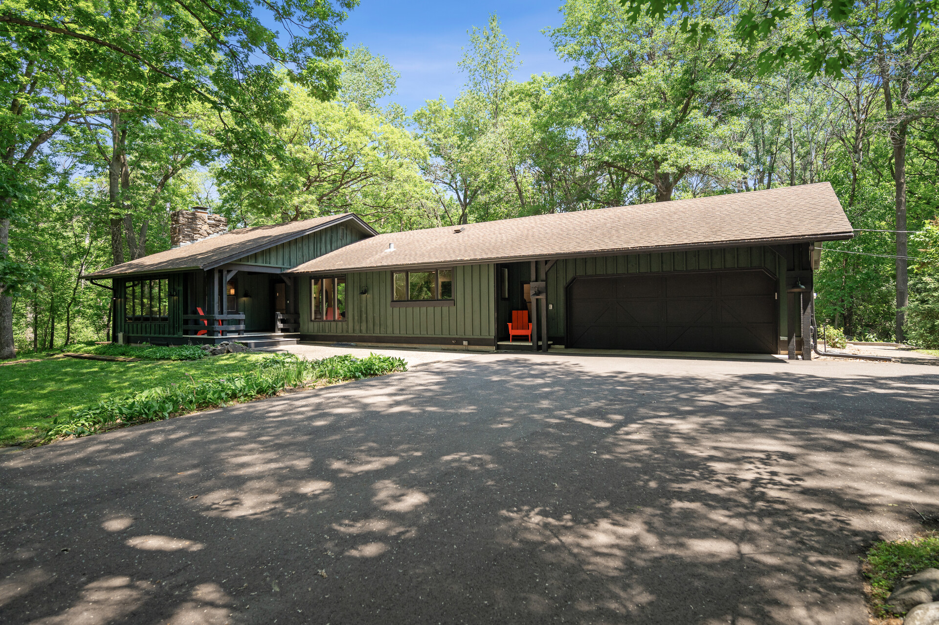 Situated on over 3 beautiful acres in the prestigious North Oaks community, this exceptional property offers the perfect blend of modern design, timeless character, and peaceful natural surroundings. Enveloped by mature trees and overlooking a pond—ideal for adding a small dock for kayaking or paddle boating—this home provides a true escape while remaining just a short drive to both Minneapolis and St. Paul. Completely overhauled down to the studs in 2024, every inch has been reimagined with all-new plumbing, electrical, mechanicals, Pella windows, and top-of-the-line finishes. Inside, you’ll find the perfect balance of organic textures and sophisticated style: luxury vinyl plank flooring, plush carpet, hand-carved bar and shelving, designer light fixtures, and custom hardware throughout. The original river rock fireplace and flagstone floor remain as cherished nods to the home’s history. The expansive kitchen is a dream with custom cabinetry, open shelving, a ZLINE Professional 8-burner range, double oven, drawer-style microwave, and a custom range hood. The main-level bath feels like a spa setting with heated tile floors, a freestanding soaking tub set in front of a cedar-planked wall, and a walk-in shower with pebble mosaic floors. The primary suite features oversized windows, cedar-plank ceiling, and a walk-in closet with built-in storage and in-closet laundry. The lower level includes a family room that was meant for gathering with a gas fireplace, a wet bar with a full-size refrigerator, dishwasher, and sink, plus a sauna with a lookout window for TV viewing. You’ll also find another bathroom, secondary laundry, and 2 large bedrooms, one of which is the perfect bunk room with built-in queen-size beds. Enjoy the outdoors from the vaulted screened porch (with storage underneath) or the new back deck. With a 3+ acre lot, there are endless opportunities for future expansion, such as a guest house, art studio, or he/she shed. You’ll also enjoy the North Oaks Golf Club membership that includes access to a private beach, kayaks, canoes, tennis, and pickleball courts. With its stunning renovation, beautiful setting, and unmatched character, this one-of-a-kind home is a rare opportunity to enjoy the very best of luxury living surrounded by nature.