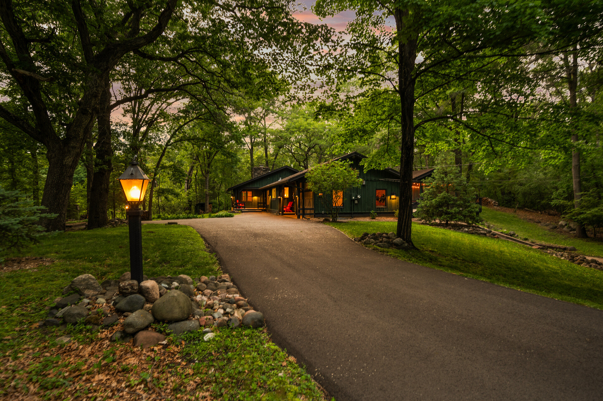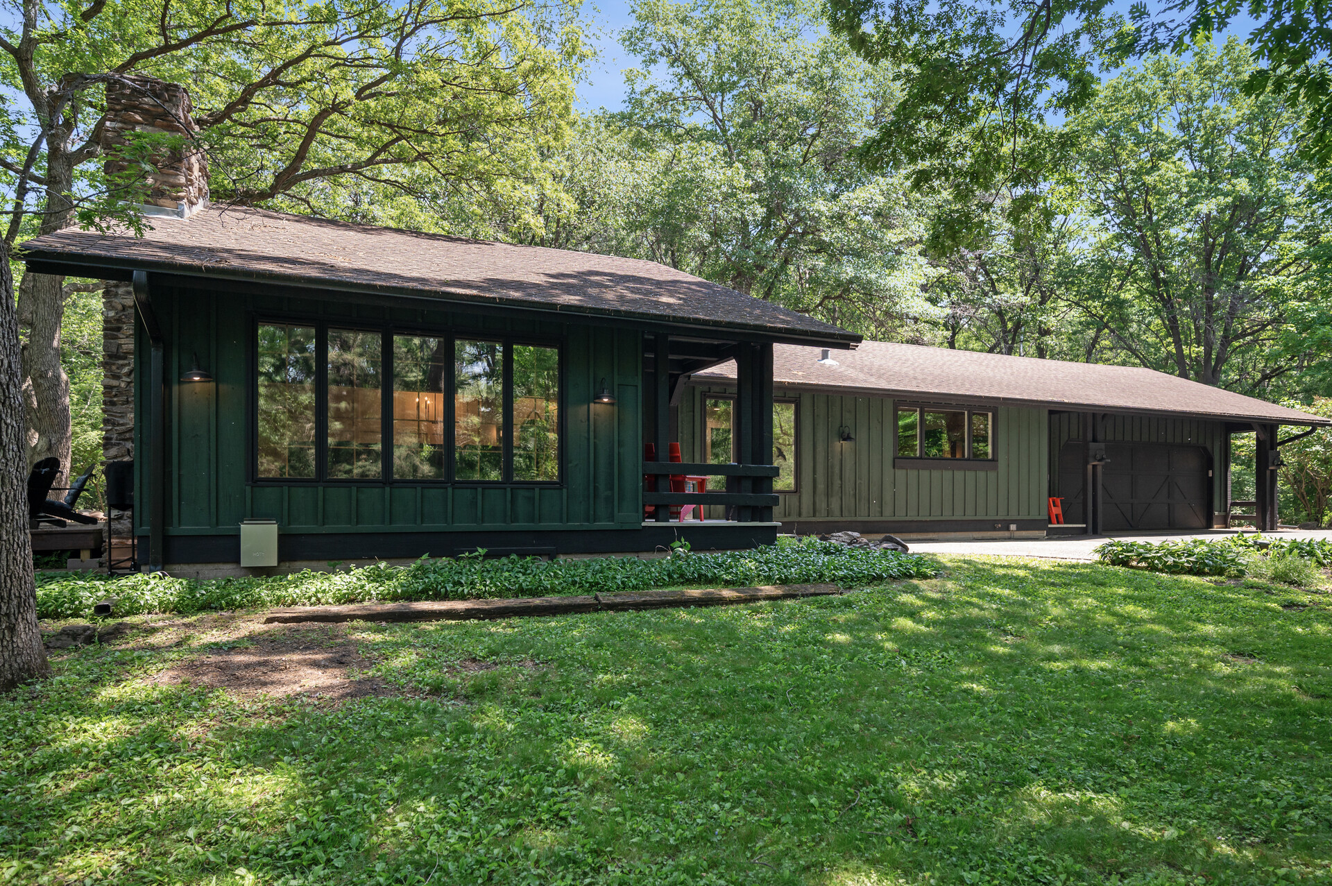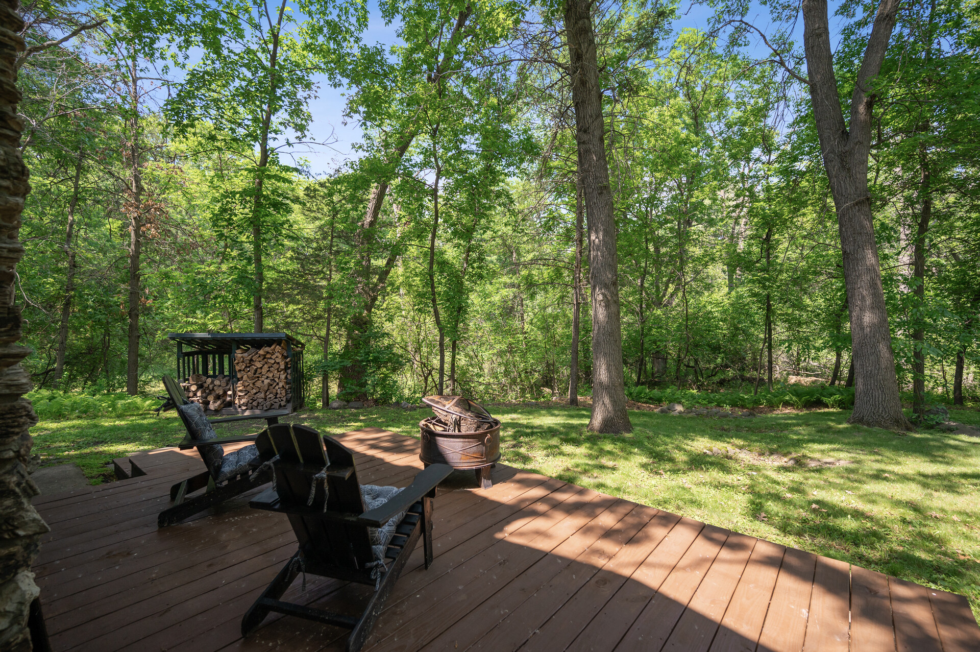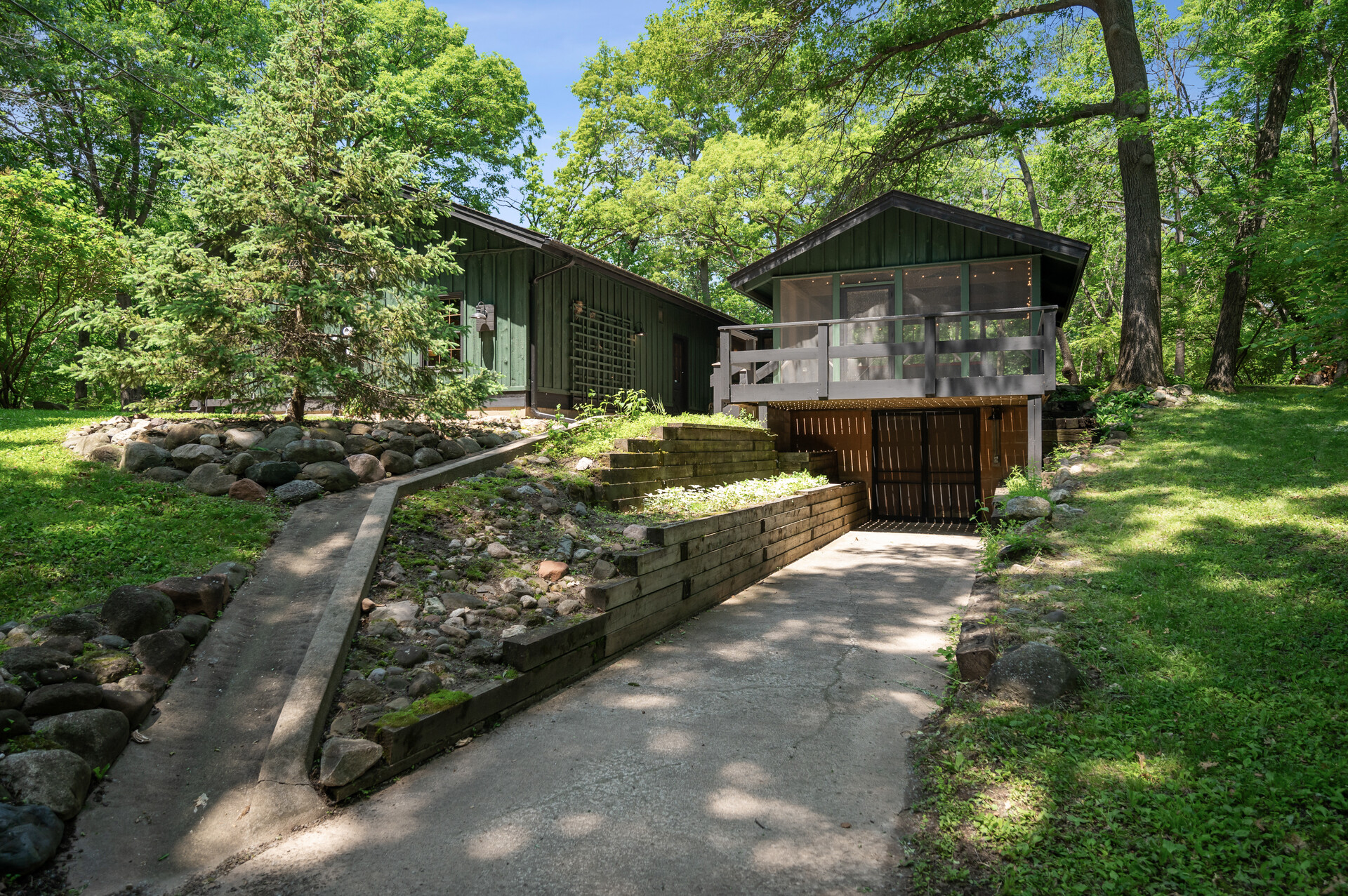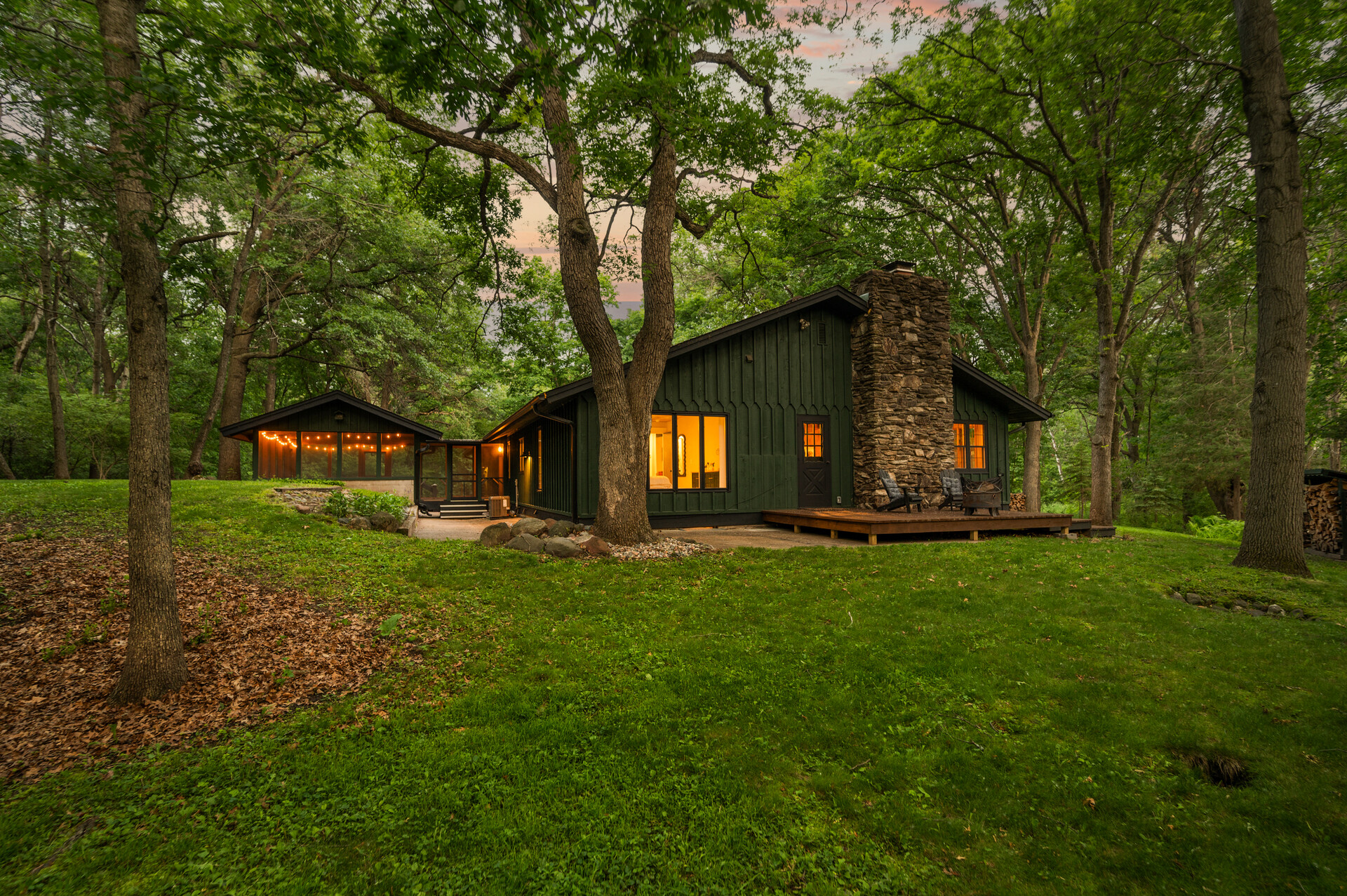 Situated on over 3 beautiful acres in the prestigious North Oaks community, this exceptional property offers the perfect blend of modern design, timeless character, and peaceful natural surroundings. Enveloped by mature trees and overlooking a pond—ideal for adding a small dock for kayaking or paddle boating—this home provides a true escape while remaining just a short drive to both Minneapolis and St. Paul. Completely overhauled down to the studs in 2024, every inch has been reimagined with all-new plumbing, electrical, mechanicals, Pella windows, and top-of-the-line finishes. Inside, you’ll find the perfect balance of organic textures and sophisticated style: luxury vinyl plank flooring, plush carpet, hand-carved bar and shelving, designer light fixtures, and custom hardware throughout. The original river rock fireplace and flagstone floor remain as cherished nods to the home’s history. The expansive kitchen is a dream with custom cabinetry, open shelving, a ZLINE Professional 8-burner range, double oven, drawer-style microwave, and a custom range hood. The main-level bath feels like a spa setting with heated tile floors, a freestanding soaking tub set in front of a cedar-planked wall, and a walk-in shower with pebble mosaic floors. The primary suite features oversized windows, cedar-plank ceiling, and a walk-in closet with built-in storage and in-closet laundry. The lower level includes a family room that was meant for gathering with a gas fireplace, a wet bar with a full-size refrigerator, dishwasher, and sink, plus a sauna with a lookout window for TV viewing. You’ll also find another bathroom, secondary laundry, and 2 large bedrooms, one of which is the perfect bunk room with built-in queen-size beds. Enjoy the outdoors from the vaulted screened porch (with storage underneath) or the new back deck. With a 3+ acre lot, there are endless opportunities for future expansion, such as a guest house, art studio, or he/she shed. You’ll also enjoy the North Oaks Golf Club membership that includes access to a private beach, kayaks, canoes, tennis, and pickleball courts. With its stunning renovation, beautiful setting, and unmatched character, this one-of-a-kind home is a rare opportunity to enjoy the very best of luxury living surrounded by nature.