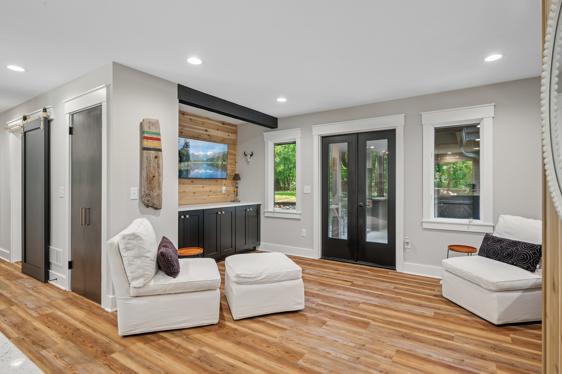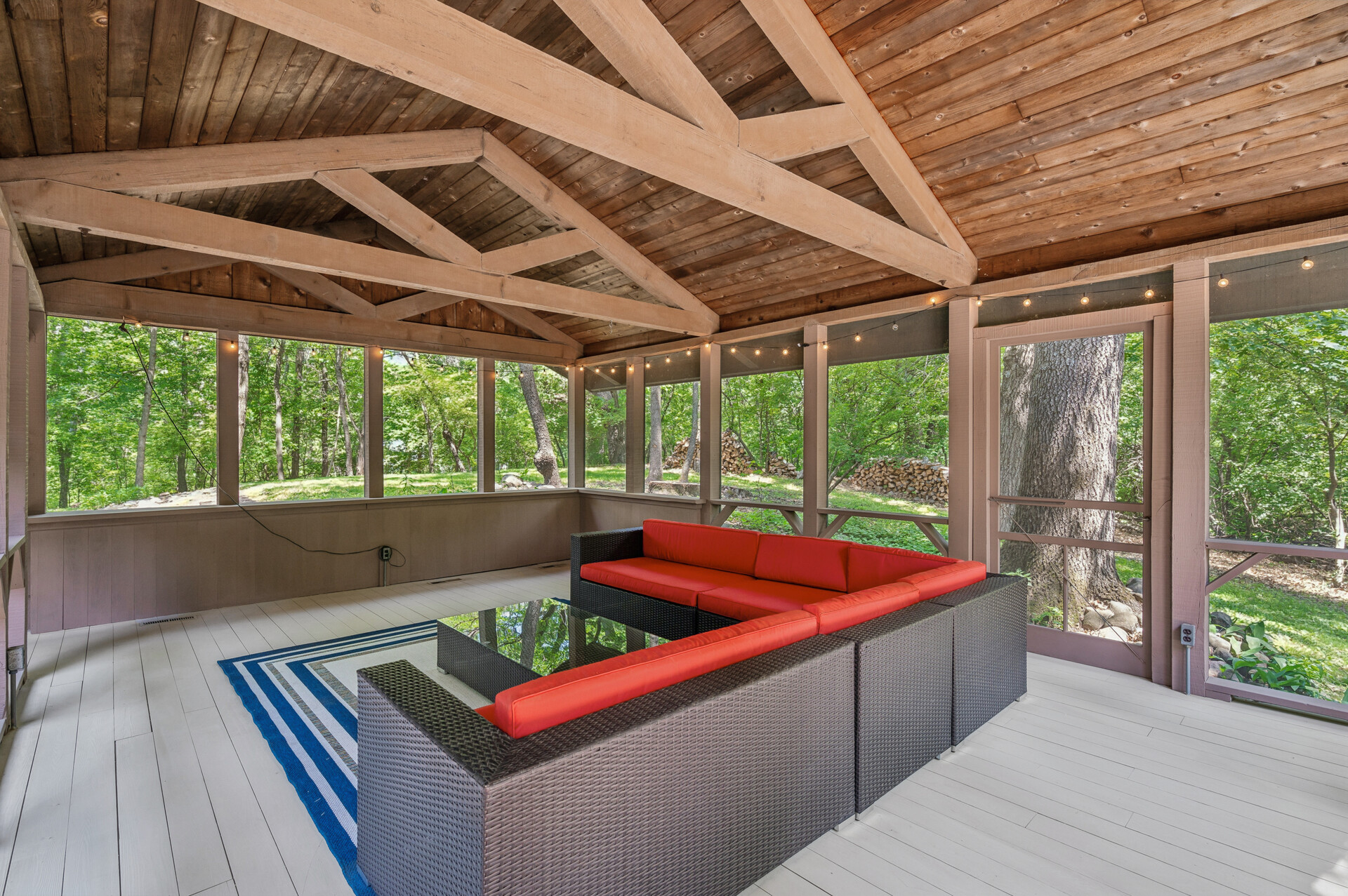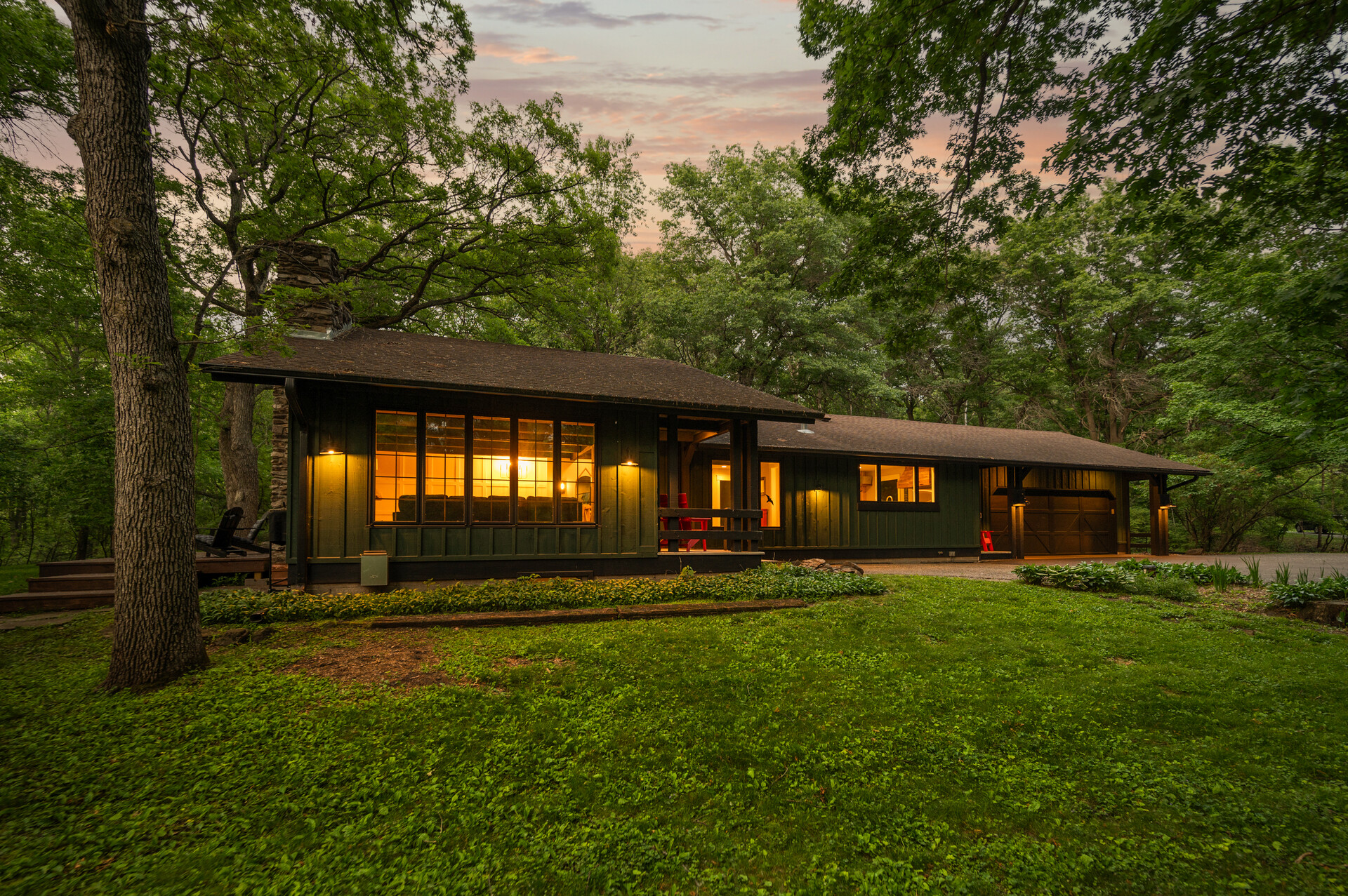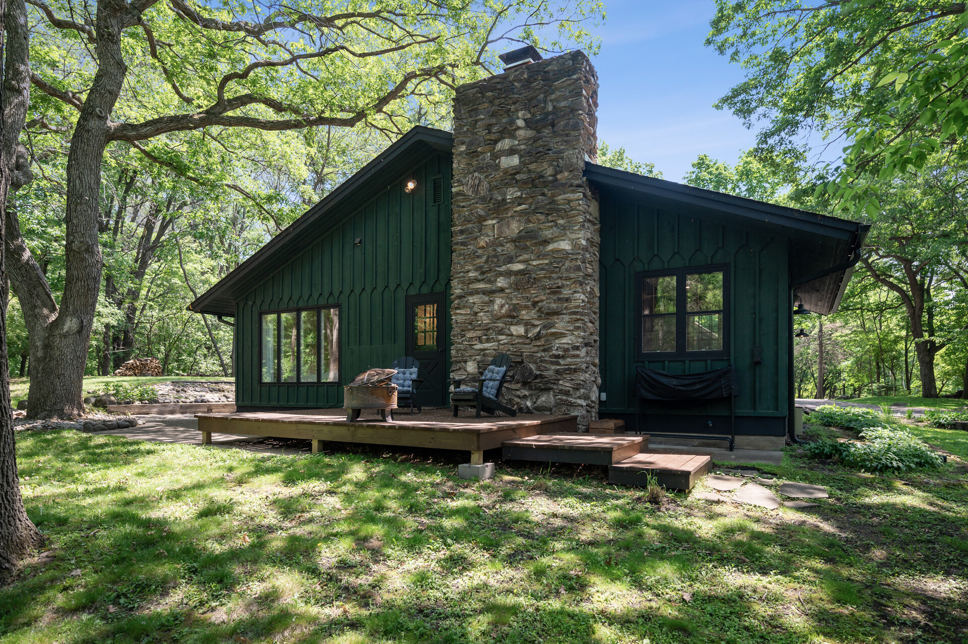 Situated on over 3 beautiful acres in the prestigious North Oaks community, this exceptional property offers the perfect blend of modern design, timeless character, and peaceful natural surroundings. Enveloped by mature trees and overlooking a pond—ideal for adding a small dock for kayaking or paddle boating—this home provides a true escape while remaining just a short drive to both Minneapolis and St. Paul. Completely overhauled down to the studs in 2024, every inch has been reimagined with all-new plumbing, electrical, mechanicals, Pella windows, and top-of-the-line finishes. Inside, you’ll find the perfect balance of organic textures and sophisticated style: luxury vinyl plank flooring, plush carpet, hand-carved bar and shelving, designer light fixtures, and custom hardware throughout. The original river rock fireplace and flagstone floor remain as cherished nods to the home’s history. The expansive kitchen is a dream with custom cabinetry, open shelving, a ZLINE Professional 8-burner range, double oven, drawer-style microwave, and a custom range hood. The main-level bath feels like a spa setting with heated tile floors, a freestanding soaking tub set in front of a cedar-planked wall, and a walk-in shower with pebble mosaic floors. The primary suite features oversized windows, cedar-plank ceiling, and a walk-in closet with built-in storage and in-closet laundry. The lower level includes a family room that was meant for gathering with a gas fireplace, a wet bar with a full-size refrigerator, dishwasher, and sink, plus a sauna with a lookout window for TV viewing. You’ll also find another bathroom, secondary laundry, and 2 large bedrooms, one of which is the perfect bunk room with built-in queen-size beds. Enjoy the outdoors from the vaulted screened porch (with storage underneath) or the new back deck. With a 3+ acre lot, there are endless opportunities for future expansion, such as a guest house, art studio, or he/she shed. You’ll also enjoy the North Oaks Golf Club membership that includes access to a private beach, kayaks, canoes, tennis, and pickleball courts. With its stunning renovation, beautiful setting, and unmatched character, this one-of-a-kind home is a rare opportunity to enjoy the very best of luxury living surrounded by nature.