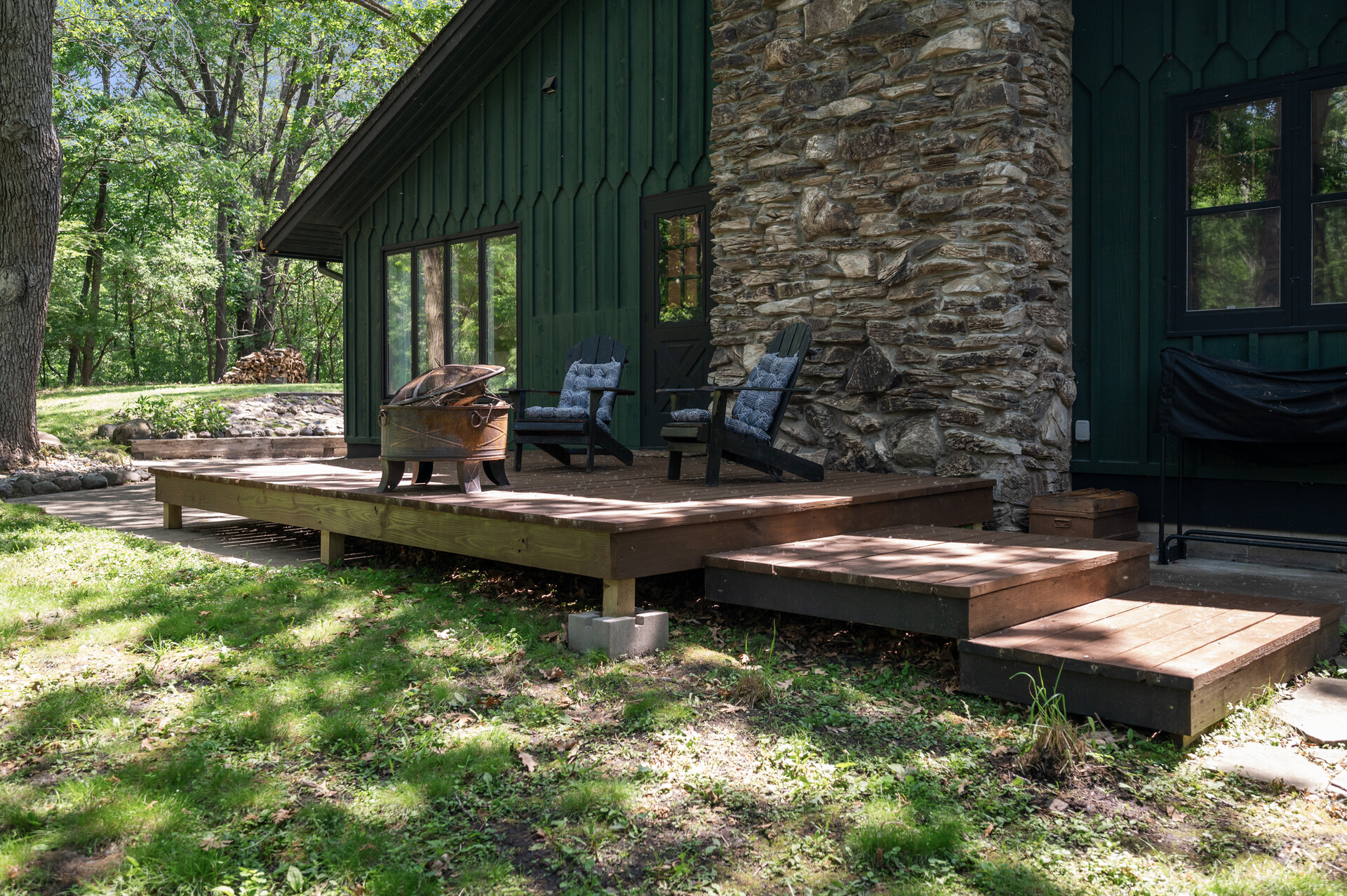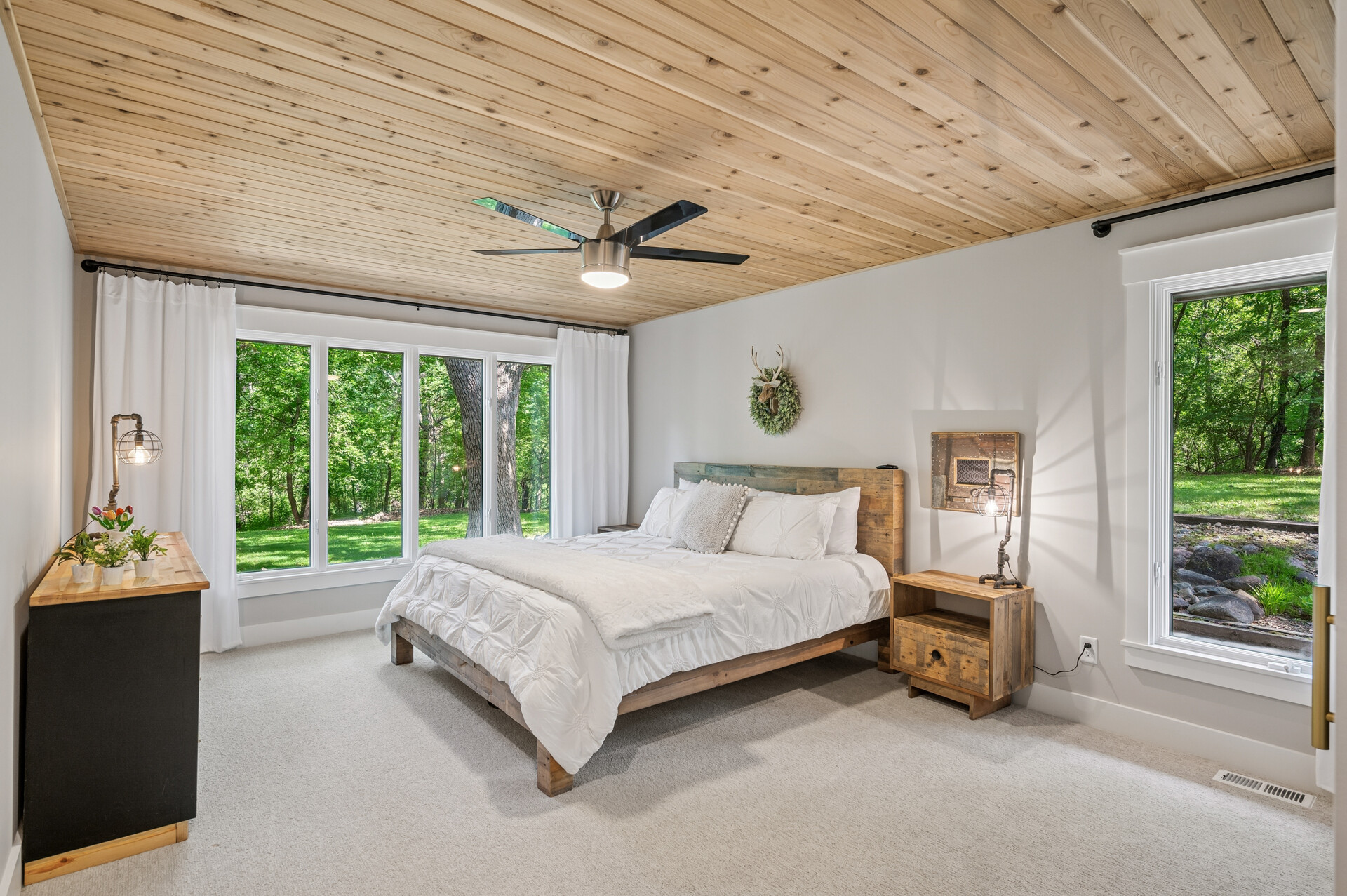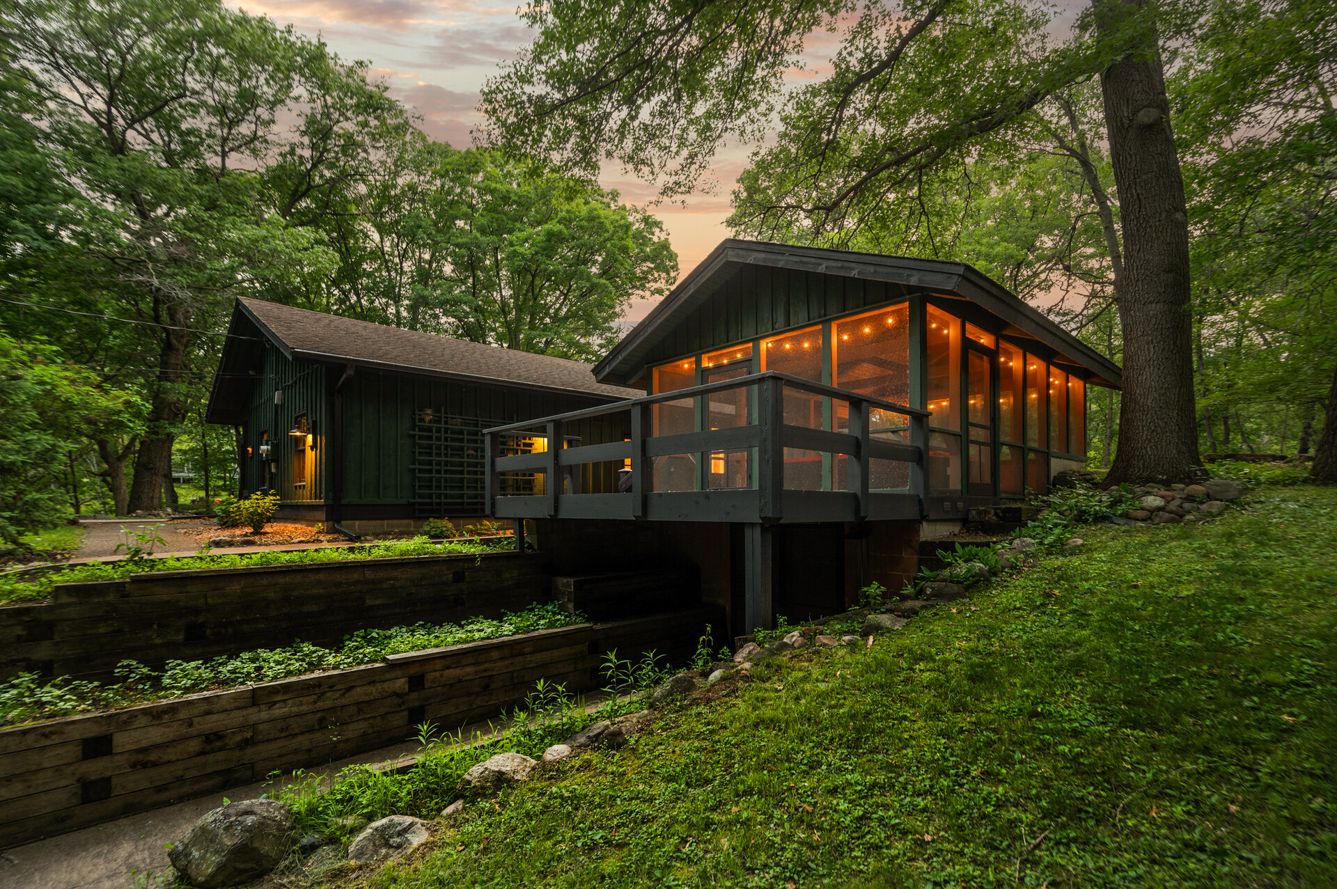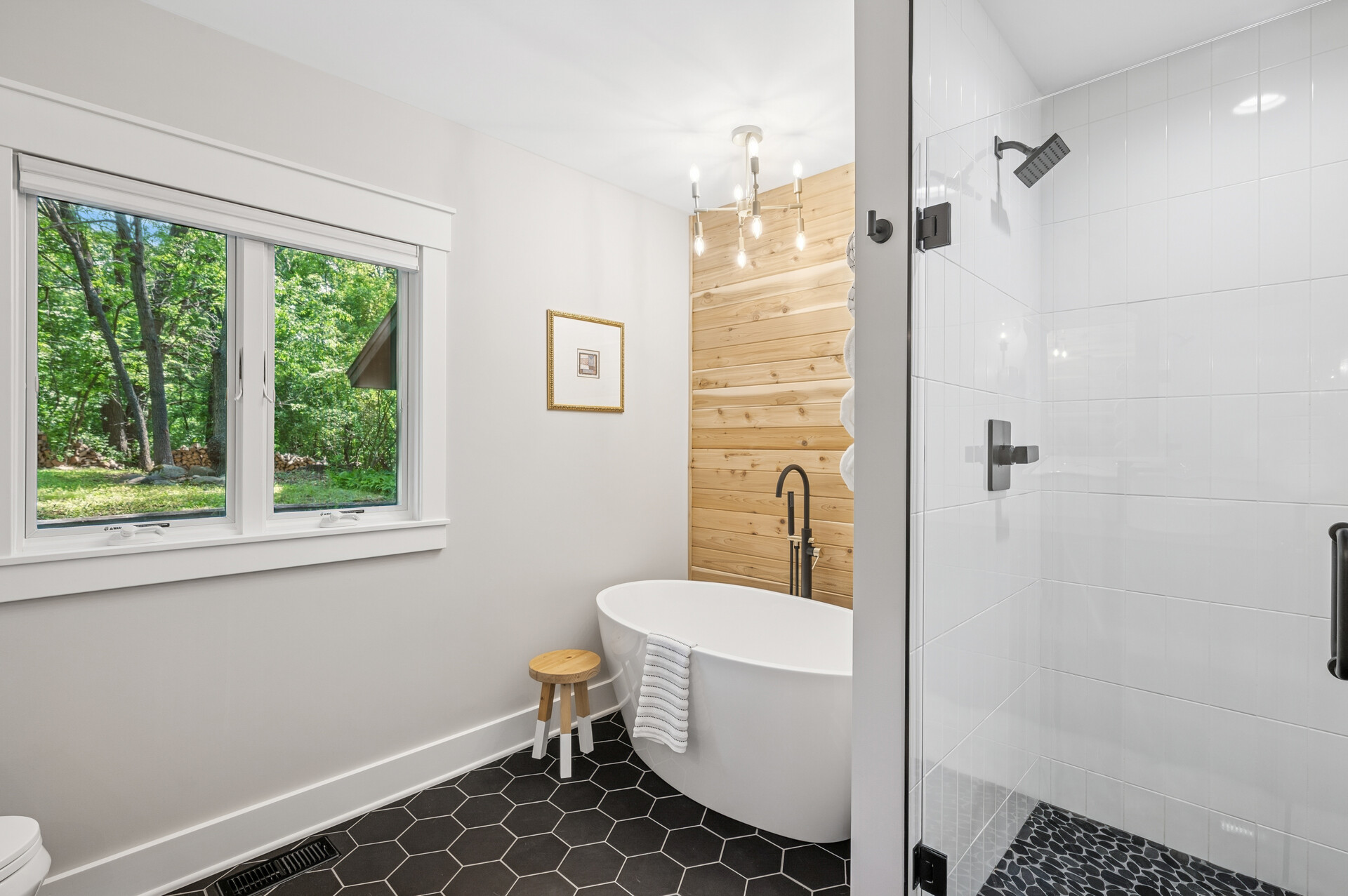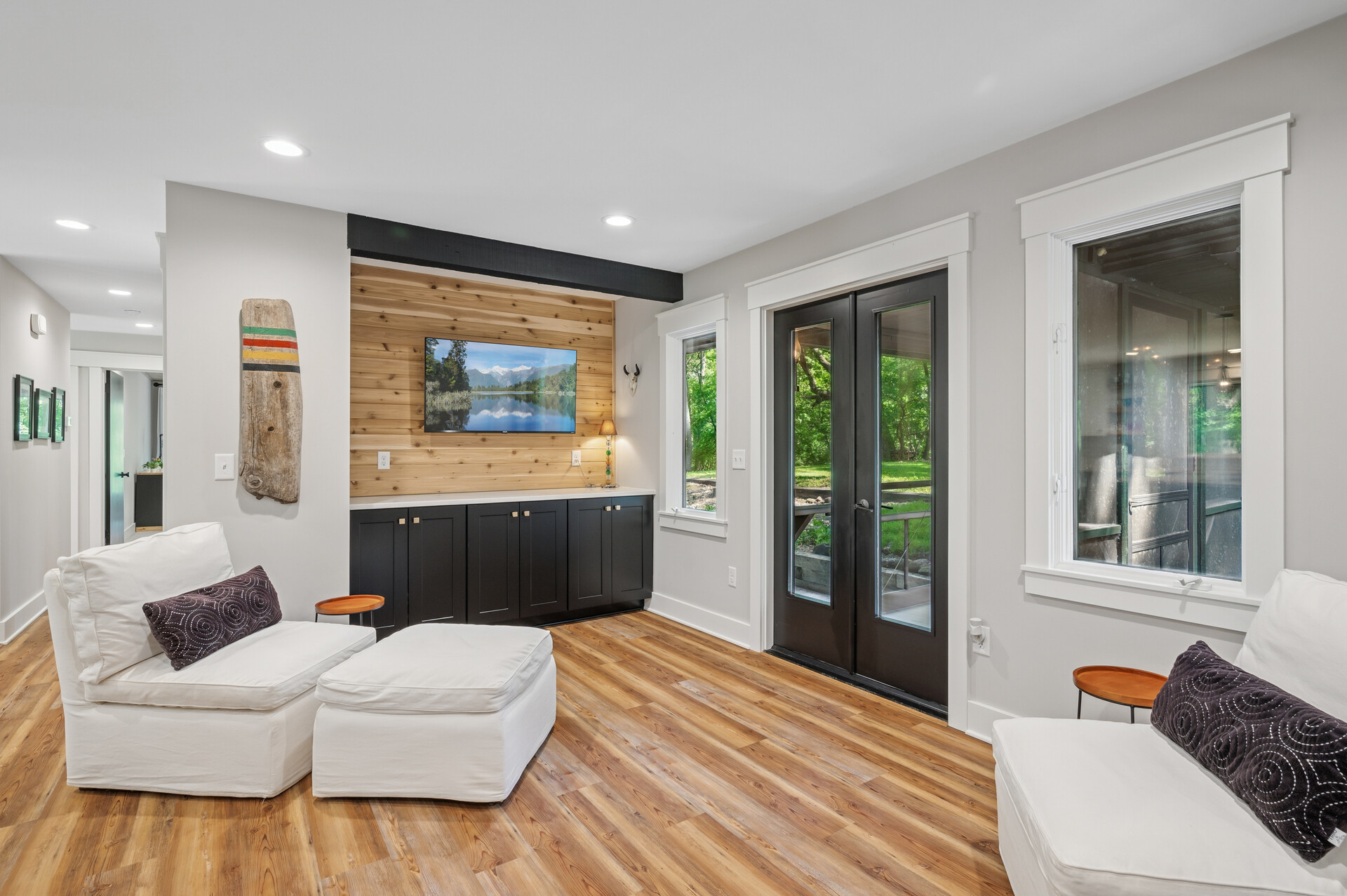 Situated on over 3 beautiful acres in the prestigious North Oaks community, this exceptional property offers the perfect blend of modern design, timeless character, and peaceful natural surroundings. Enveloped by mature trees and overlooking a pond—ideal for adding a small dock for kayaking or paddle boating—this home provides a true escape while remaining just a short drive to both Minneapolis and St. Paul. Completely overhauled down to the studs in 2024, every inch has been reimagined with all-new plumbing, electrical, mechanicals, Pella windows, and top-of-the-line finishes. Inside, you’ll find the perfect balance of organic textures and sophisticated style: luxury vinyl plank flooring, plush carpet, hand-carved bar and shelving, designer light fixtures, and custom hardware throughout. The original river rock fireplace and flagstone floor remain as cherished nods to the home’s history. The expansive kitchen is a dream with custom cabinetry, open shelving, a ZLINE Professional 8-burner range, double oven, drawer-style microwave, and a custom range hood. The main-level bath feels like a spa setting with heated tile floors, a freestanding soaking tub set in front of a cedar-planked wall, and a walk-in shower with pebble mosaic floors. The primary suite features oversized windows, cedar-plank ceiling, and a walk-in closet with built-in storage and in-closet laundry. The lower level includes a family room that was meant for gathering with a gas fireplace, a wet bar with a full-size refrigerator, dishwasher, and sink, plus a sauna with a lookout window for TV viewing. You’ll also find another bathroom, secondary laundry, and 2 large bedrooms, one of which is the perfect bunk room with built-in queen-size beds. Enjoy the outdoors from the vaulted screened porch (with storage underneath) or the new back deck. With a 3+ acre lot, there are endless opportunities for future expansion, such as a guest house, art studio, or he/she shed. You’ll also enjoy the North Oaks Golf Club membership that includes access to a private beach, kayaks, canoes, tennis, and pickleball courts. With its stunning renovation, beautiful setting, and unmatched character, this one-of-a-kind home is a rare opportunity to enjoy the very best of luxury living surrounded by nature.