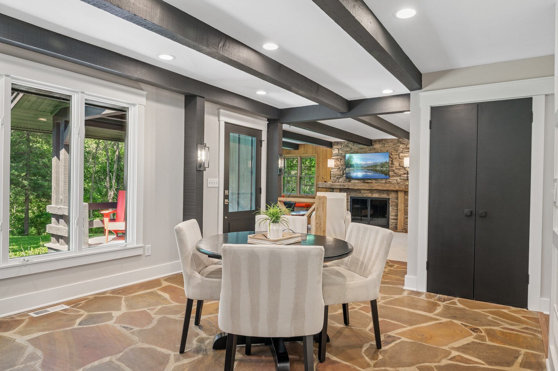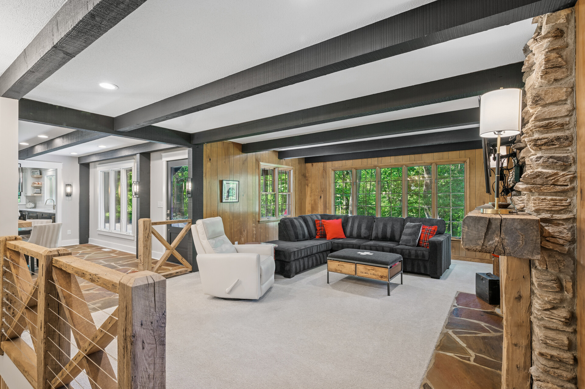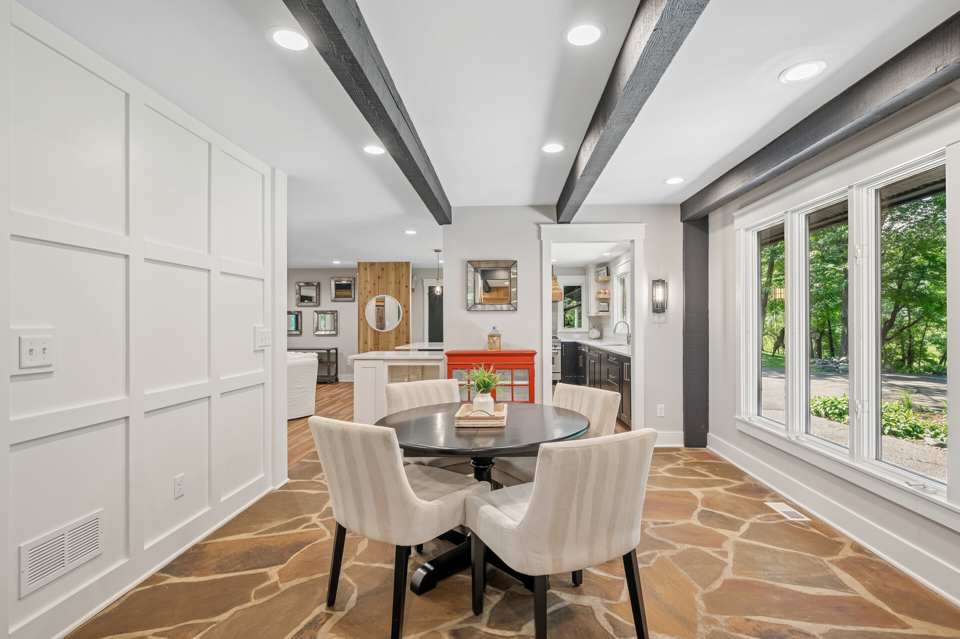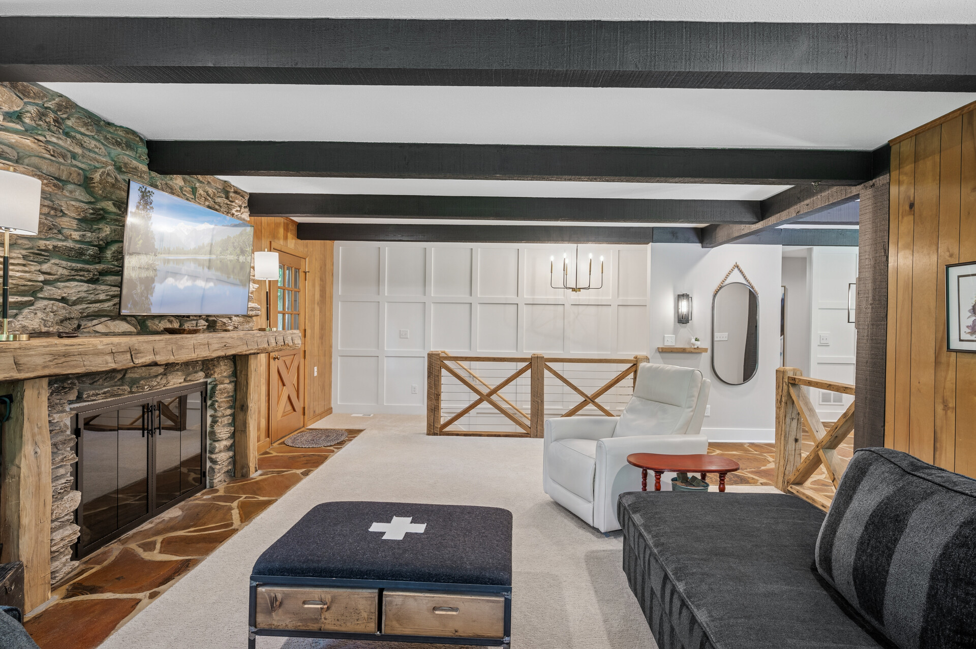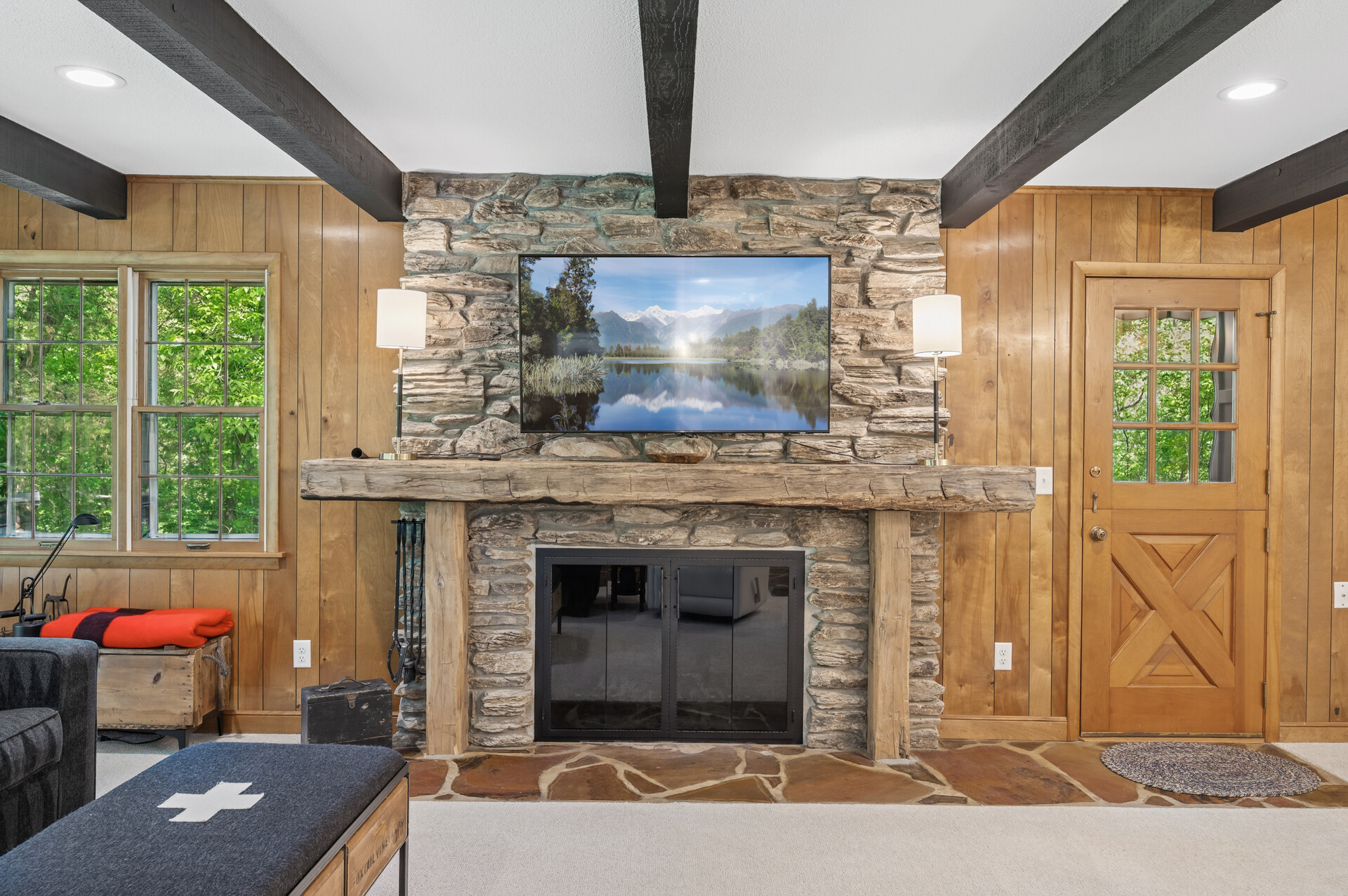 Situated on over 3 beautiful acres in the prestigious North Oaks community, this exceptional property offers the perfect blend of modern design, timeless character, and peaceful natural surroundings. Enveloped by mature trees and overlooking a pond—ideal for adding a small dock for kayaking or paddle boating—this home provides a true escape while remaining just a short drive to both Minneapolis and St. Paul. Completely overhauled down to the studs in 2024, every inch has been reimagined with all-new plumbing, electrical, mechanicals, Pella windows, and top-of-the-line finishes. Inside, you’ll find the perfect balance of organic textures and sophisticated style: luxury vinyl plank flooring, plush carpet, hand-carved bar and shelving, designer light fixtures, and custom hardware throughout. The original river rock fireplace and flagstone floor remain as cherished nods to the home’s history. The expansive kitchen is a dream with custom cabinetry, open shelving, a ZLINE Professional 8-burner range, double oven, drawer-style microwave, and a custom range hood. The main-level bath feels like a spa setting with heated tile floors, a freestanding soaking tub set in front of a cedar-planked wall, and a walk-in shower with pebble mosaic floors. The primary suite features oversized windows, cedar-plank ceiling, and a walk-in closet with built-in storage and in-closet laundry. The lower level includes a family room that was meant for gathering with a gas fireplace, a wet bar with a full-size refrigerator, dishwasher, and sink, plus a sauna with a lookout window for TV viewing. You’ll also find another bathroom, secondary laundry, and 2 large bedrooms, one of which is the perfect bunk room with built-in queen-size beds. Enjoy the outdoors from the vaulted screened porch (with storage underneath) or the new back deck. With a 3+ acre lot, there are endless opportunities for future expansion, such as a guest house, art studio, or he/she shed. You’ll also enjoy the North Oaks Golf Club membership that includes access to a private beach, kayaks, canoes, tennis, and pickleball courts. With its stunning renovation, beautiful setting, and unmatched character, this one-of-a-kind home is a rare opportunity to enjoy the very best of luxury living surrounded by nature.