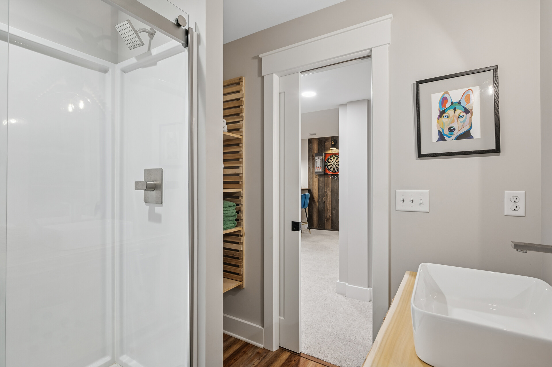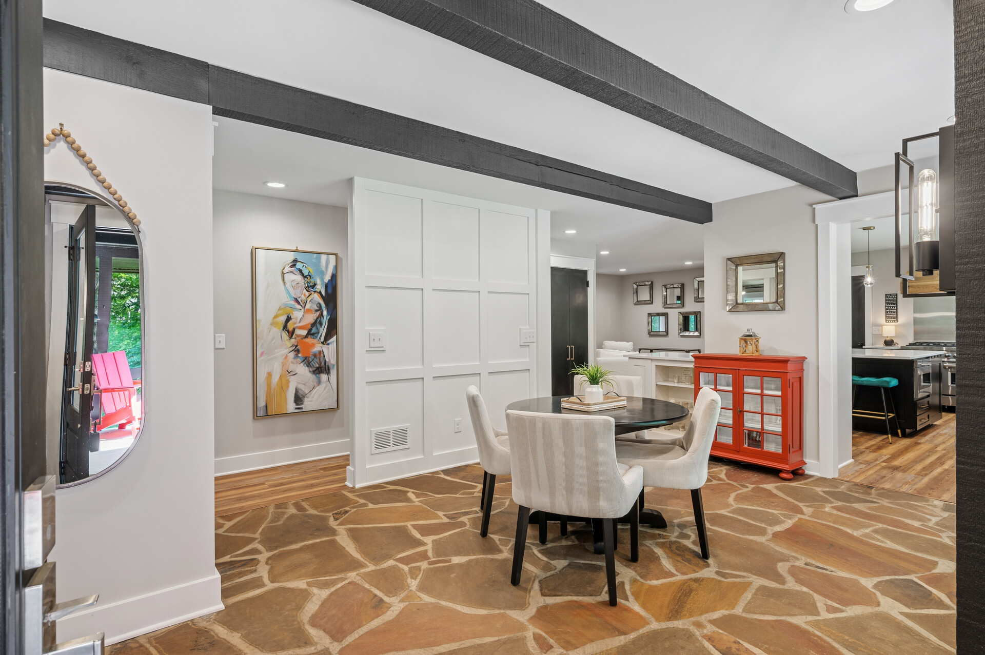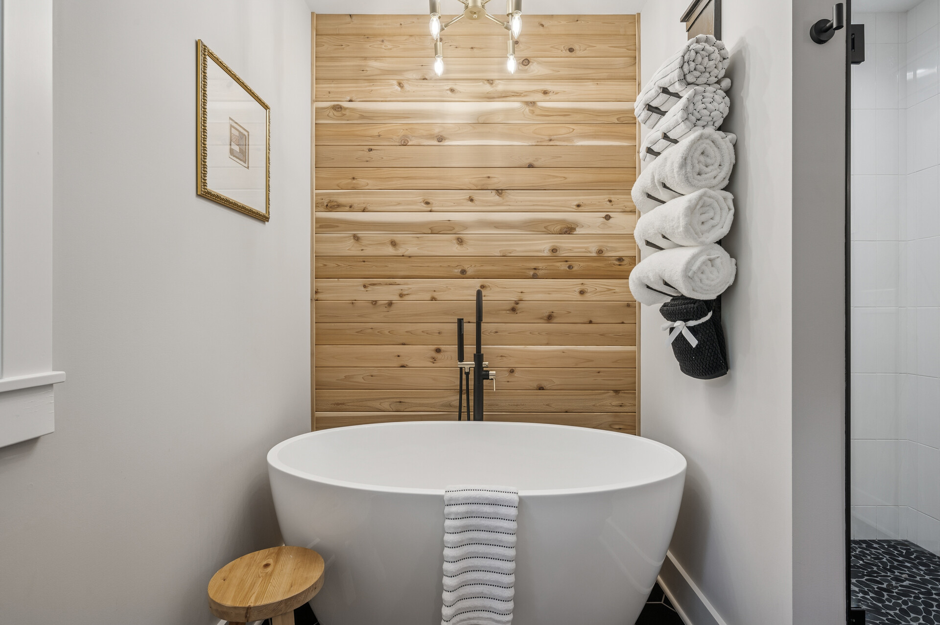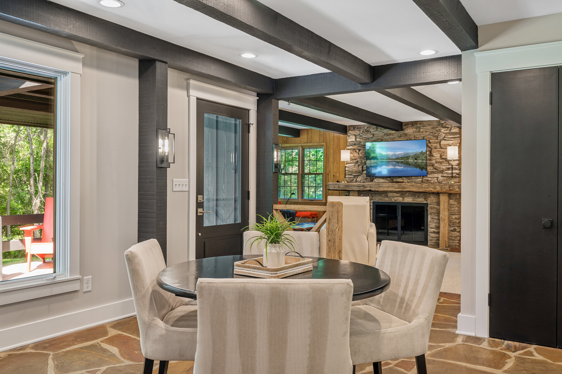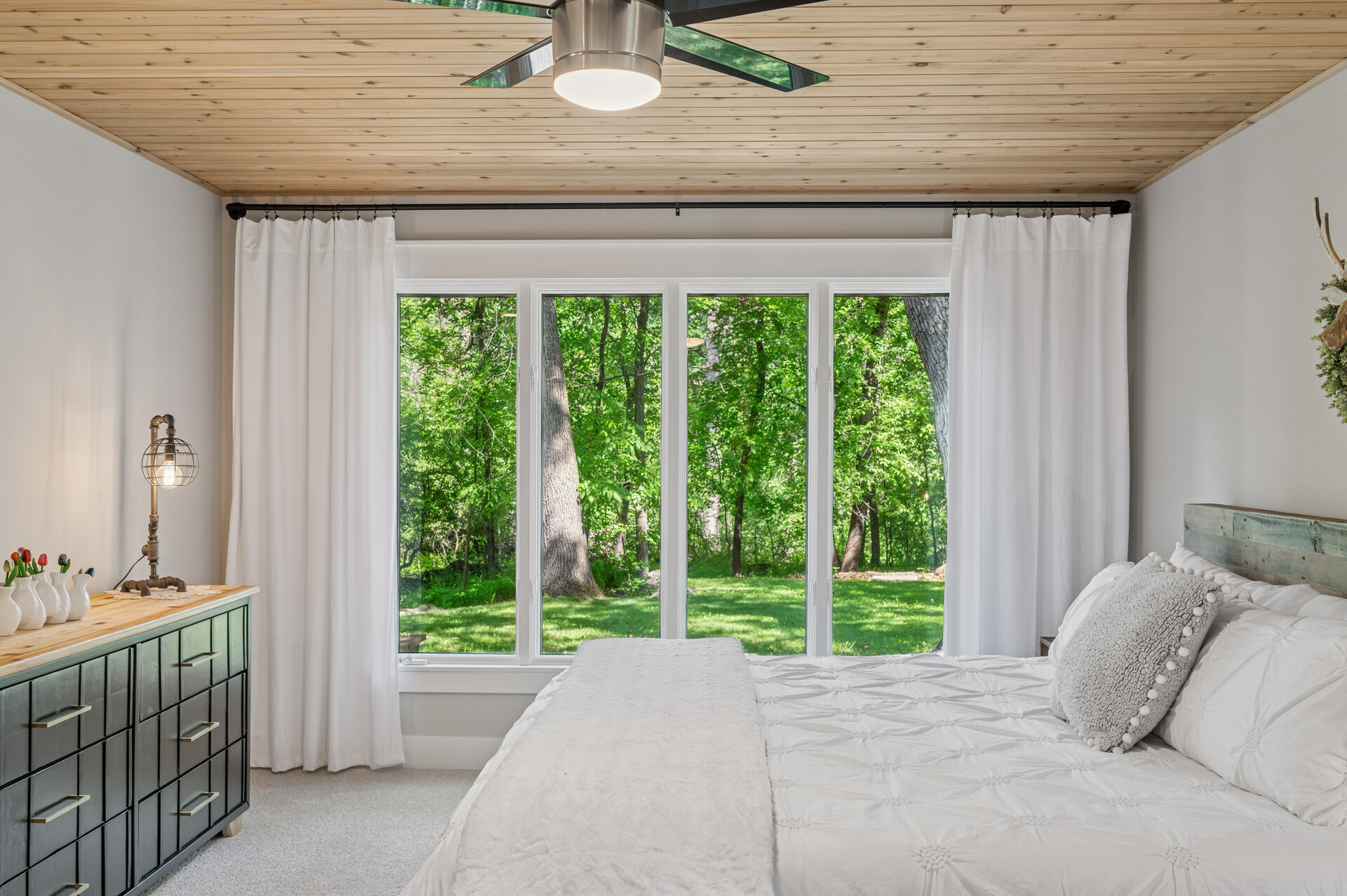 Situated on over 3 beautiful acres in the prestigious North Oaks community, this exceptional property offers the perfect blend of modern design, timeless character, and peaceful natural surroundings. Enveloped by mature trees and overlooking a pond—ideal for adding a small dock for kayaking or paddle boating—this home provides a true escape while remaining just a short drive to both Minneapolis and St. Paul. Completely overhauled down to the studs in 2024, every inch has been reimagined with all-new plumbing, electrical, mechanicals, Pella windows, and top-of-the-line finishes. Inside, you’ll find the perfect balance of organic textures and sophisticated style: luxury vinyl plank flooring, plush carpet, hand-carved bar and shelving, designer light fixtures, and custom hardware throughout. The original river rock fireplace and flagstone floor remain as cherished nods to the home’s history. The expansive kitchen is a dream with custom cabinetry, open shelving, a ZLINE Professional 8-burner range, double oven, drawer-style microwave, and a custom range hood. The main-level bath feels like a spa setting with heated tile floors, a freestanding soaking tub set in front of a cedar-planked wall, and a walk-in shower with pebble mosaic floors. The primary suite features oversized windows, cedar-plank ceiling, and a walk-in closet with built-in storage and in-closet laundry. The lower level includes a family room that was meant for gathering with a gas fireplace, a wet bar with a full-size refrigerator, dishwasher, and sink, plus a sauna with a lookout window for TV viewing. You’ll also find another bathroom, secondary laundry, and 2 large bedrooms, one of which is the perfect bunk room with built-in queen-size beds. Enjoy the outdoors from the vaulted screened porch (with storage underneath) or the new back deck. With a 3+ acre lot, there are endless opportunities for future expansion, such as a guest house, art studio, or he/she shed. You’ll also enjoy the North Oaks Golf Club membership that includes access to a private beach, kayaks, canoes, tennis, and pickleball courts. With its stunning renovation, beautiful setting, and unmatched character, this one-of-a-kind home is a rare opportunity to enjoy the very best of luxury living surrounded by nature.