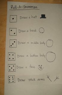 The Roll-A-Snowman Game is a quick and easy time-waster that you can do with the kids when you all are stuck inside the house. It’s simple: Roll the dice, draw the snowman part. If you roll the same number twice within one game, it doesn’t count. The first one with a complete snowman wins! You could add two dice and more snowman features for an even longer game. Enjoy!